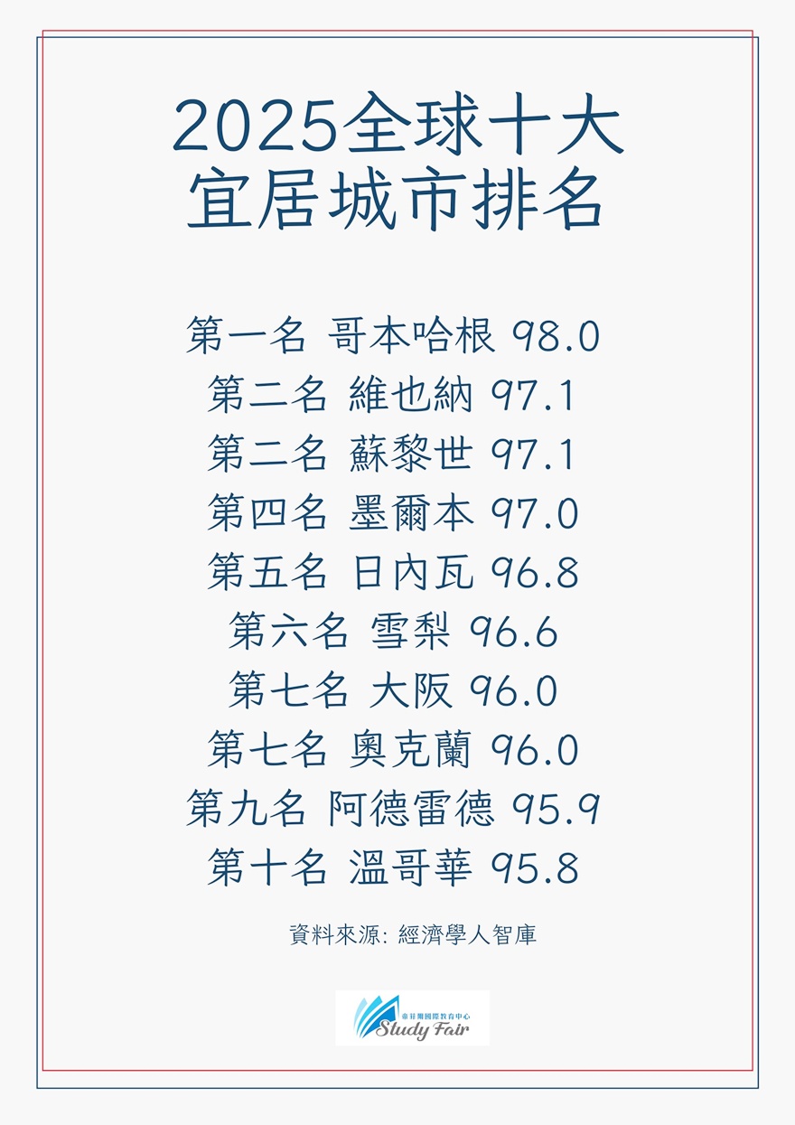 2025年全球最宜居住城市