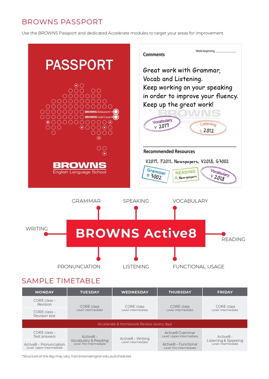 BROWNS 語言學校是一所屢獲殊榮、由家族經營的教育機構,擁有豐富的教學經驗,致力於提供高品質的語言教育與包容友善的學習環境。我們的三大校區分別位於澳洲黃金海岸的 Southport 市中心、布里斯本市中心以及墨爾本市中心,皆坐落於當地的核心地段,為學生打造舒適便利且充滿都市活力的學習空間。