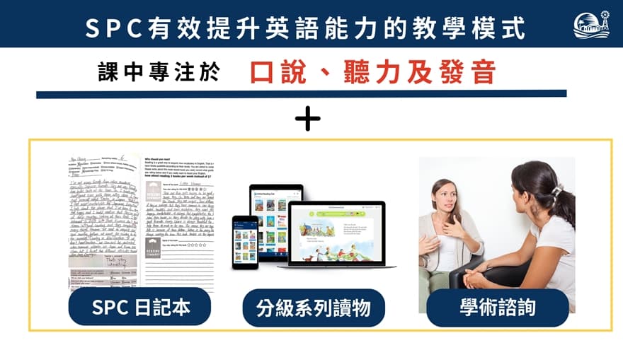 SPC 採用獨特且高效的英語教學模式:課堂中專注於口說、聽力與發音訓練,課堂外則加強閱讀與寫作能力。學生每天需完成一篇日記,每週至少閱讀一本分級讀物並撰寫心得;分級讀物不僅是累積英文詞彙的有效方式,更能透過持續練習深化語言能力。透過穩定的閱讀與書寫訓練,學生能增加詞彙量、提升閱讀理解與表達能力,進而全面強化英語實力。同時,SPC 的日記制度旨在培養學生的學習動機與自我覺察,每日寫日記的習慣不僅有助於記錄成長與反思,也能有效提升寫作與表達能力。
