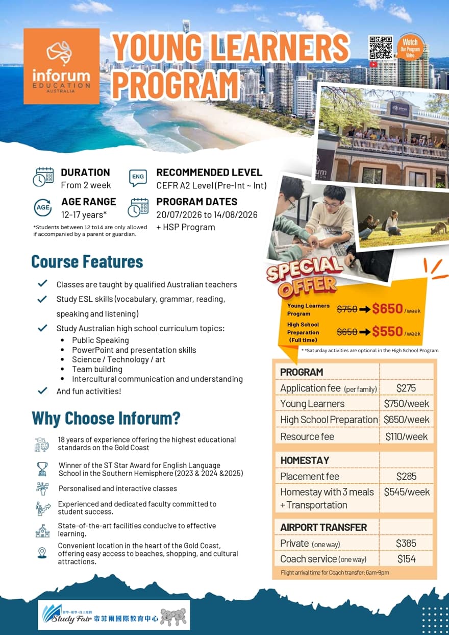 • 如需了解更多課程內容與費用,歡迎洽詢「Study Fair」預約諮詢