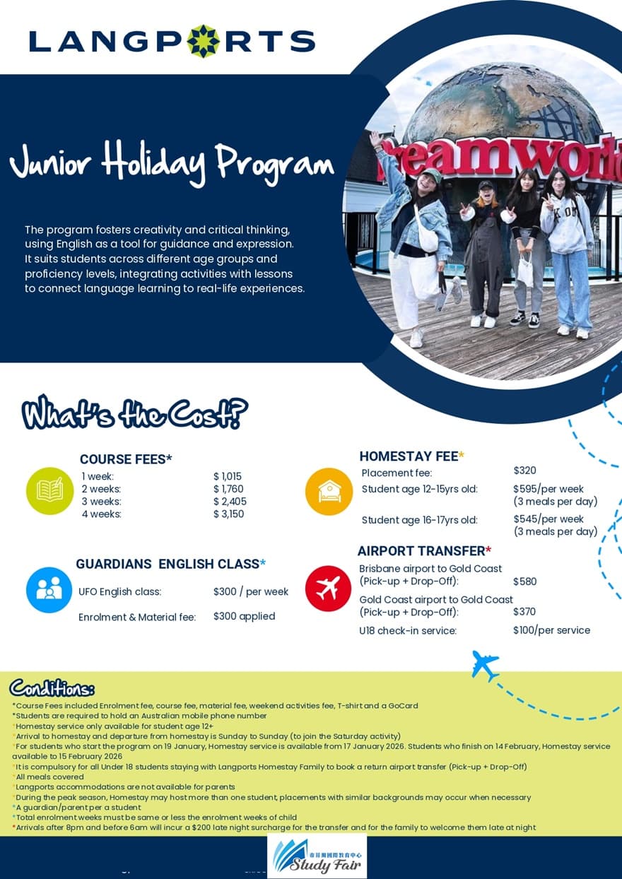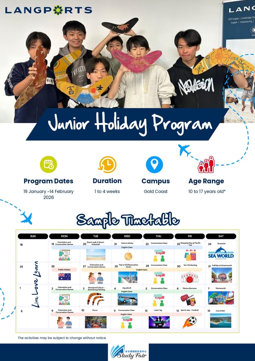 Langports 在澳洲開設的青少年英語課程,提供孩子順利且愉快學習所需的全方位安排,融合語言學習與文化體驗。