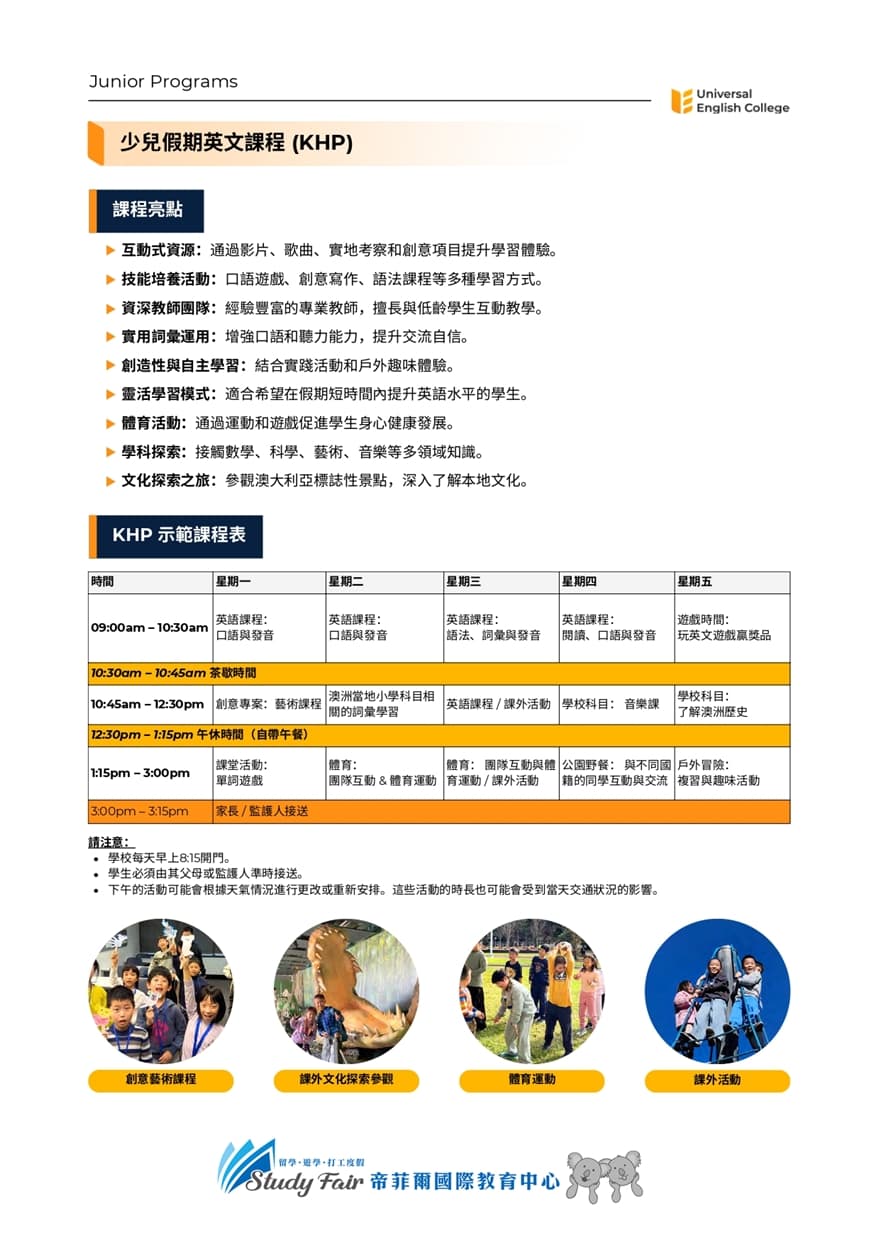 少兒假期英文課程(KHP)將互動式學習與多元文化體驗相結合,為孩子帶來一段難忘且富有成效的學習成長之旅!
