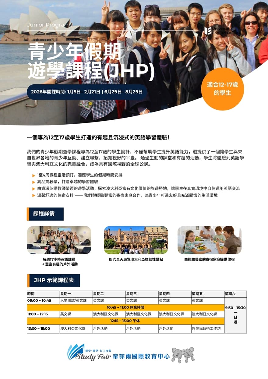 - 12–17 歲學生|青少年假期遊學課程(JHP)