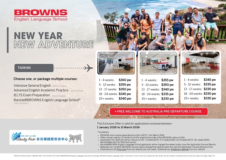 BROWNS 布朗斯英語學校是一所屢獲殊榮、由家族經營的教育機構,校區位於澳洲三大城市的市中心,地理位置優越,擁有超過 21 年豐富的英語教學經驗。