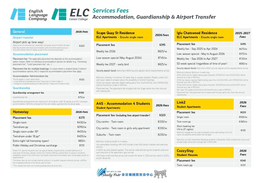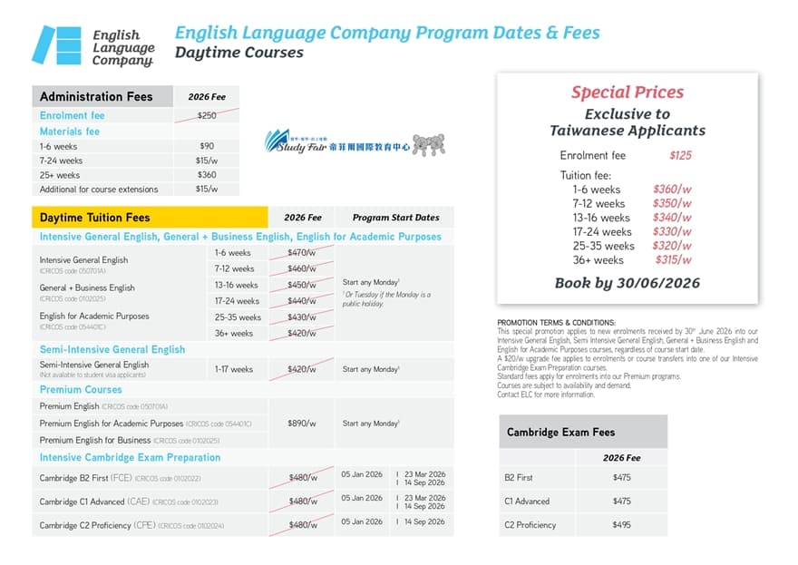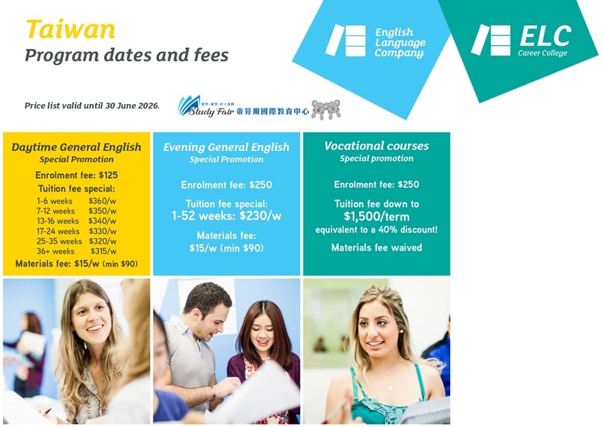 English Language Company(簡稱 ELC) 是位於澳洲雪梨(Sydney)市中心的頂尖語言學校,專為來自全球的國際學生提供多元且實用的英語課程。ELC 以其卓越的教學品質、專業的師資團隊與國際化的學習環境深受學生肯定,並與多所澳洲大學、TAFE 技職學院及就業機構合作,協助學生順利升學與進入職場。