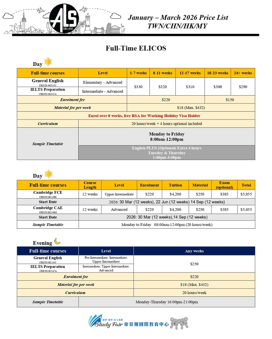 - 如需了解更多課程內容與費用,歡迎洽詢「Study Fair」預約諮詢