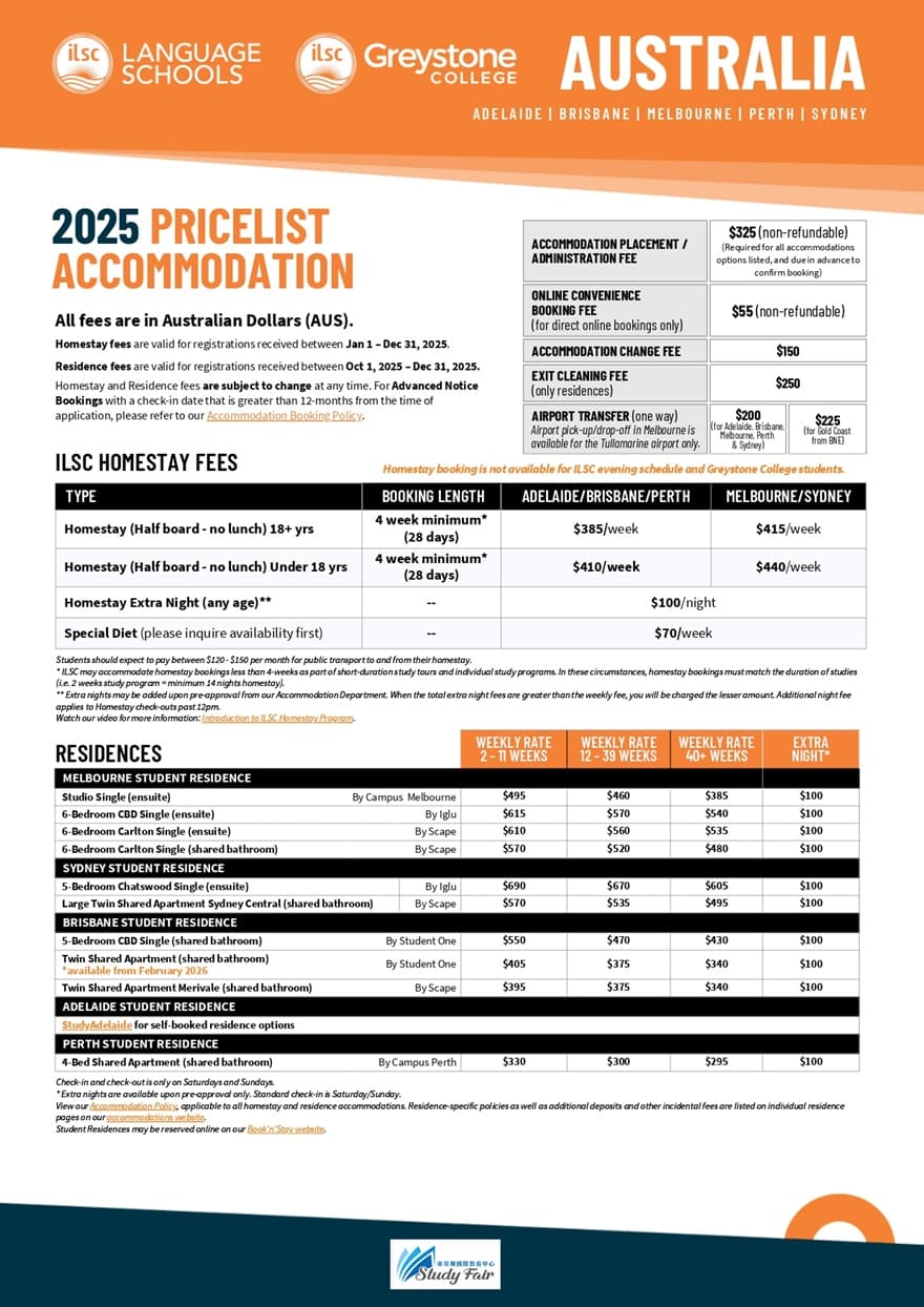 適用於 ILSC 墨爾本與雪梨校區的白天課程。