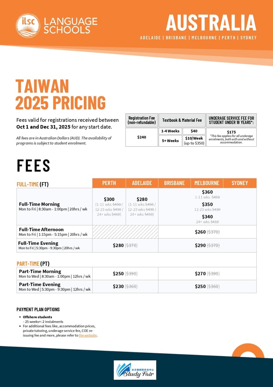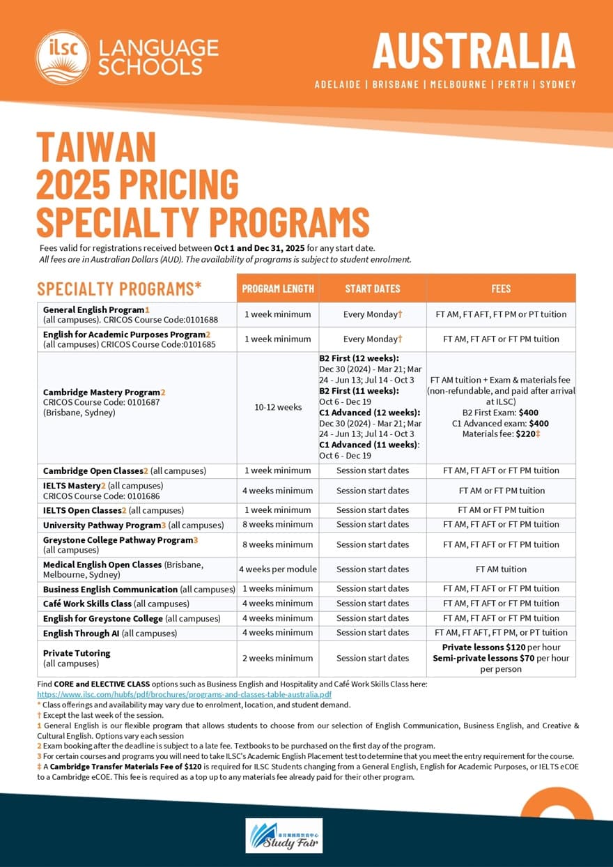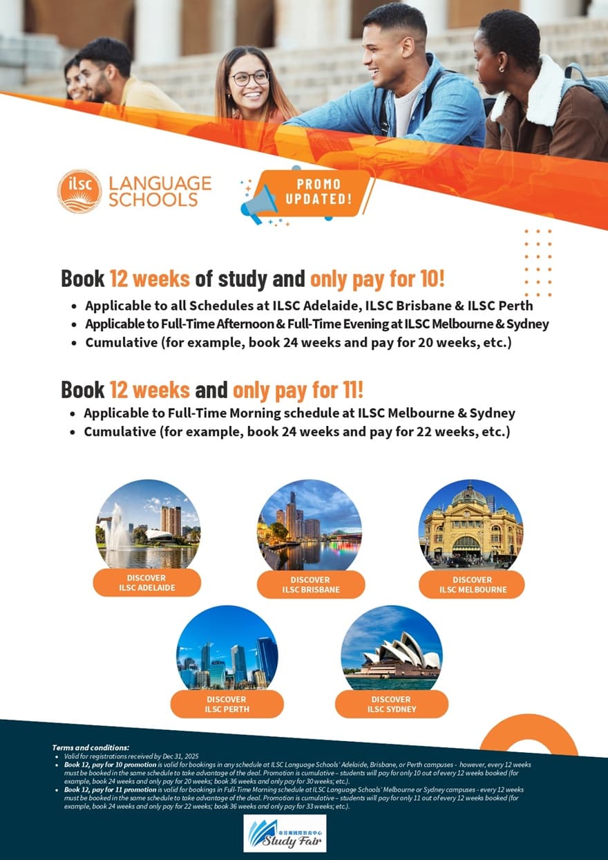 適用於 ILSC 墨爾本與雪梨校區的白天課程。