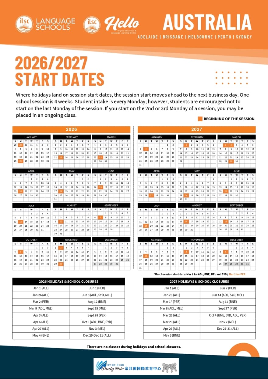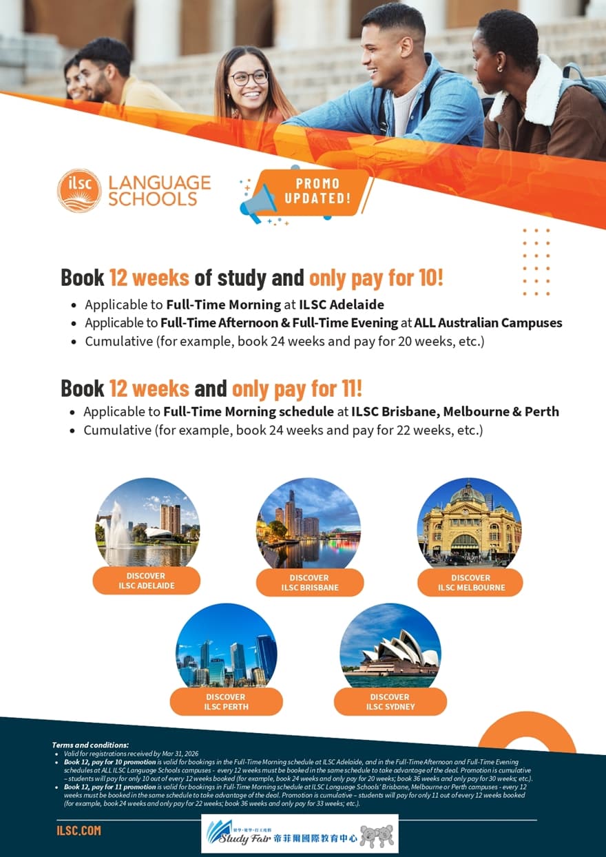 適用於 ILSC 布里斯本、墨爾本及伯斯校區的白天課程。