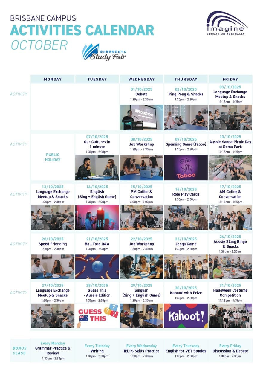 幫助你提升英語技能、結交新朋友。只需完成報名並準時出席! - 課堂以外的學習體驗