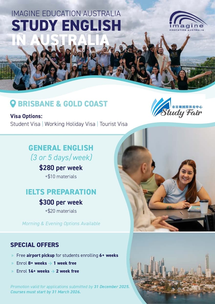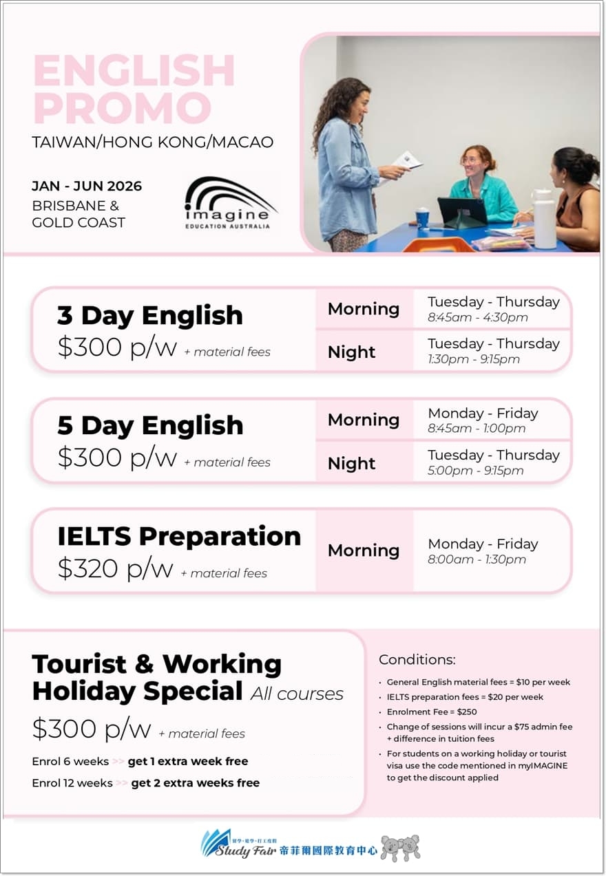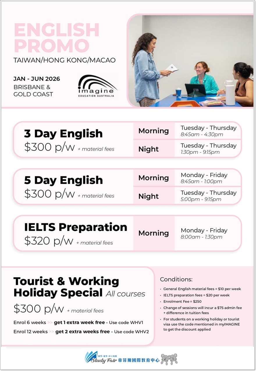 Imagine Education 澳洲誼明教育學院是學生在美麗澳洲生活期間,學習並提升英語能力的首選。