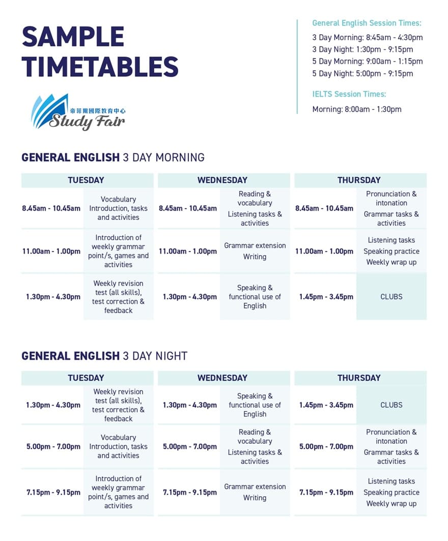 ‧ 一般英語課程:$10/週(最多收取 $250)
