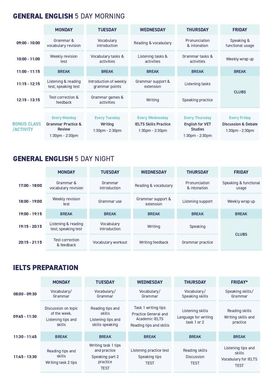 學校的英語課程目前於布里斯本校區與黃金海岸的 Southport Central 校區皆有開設。