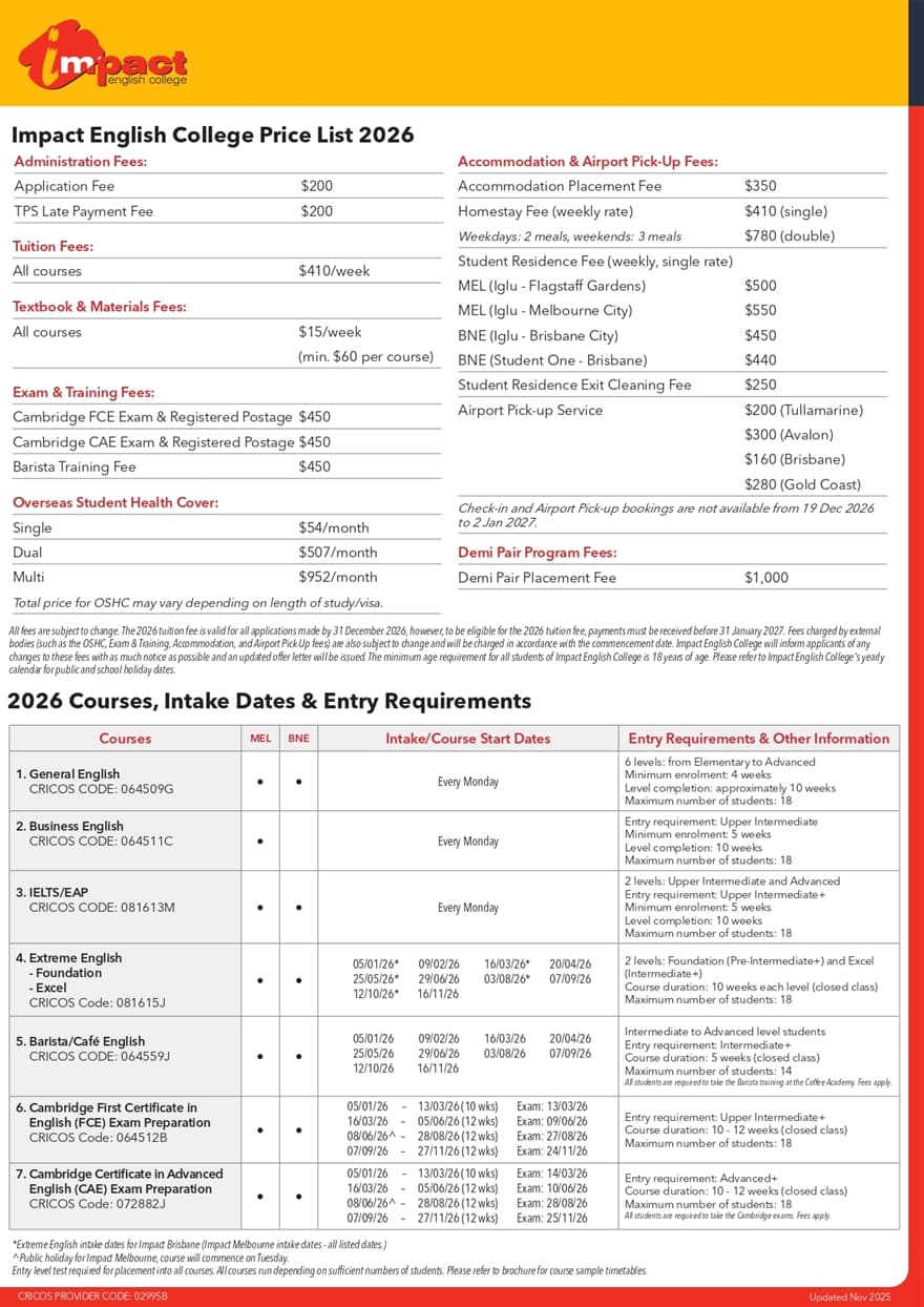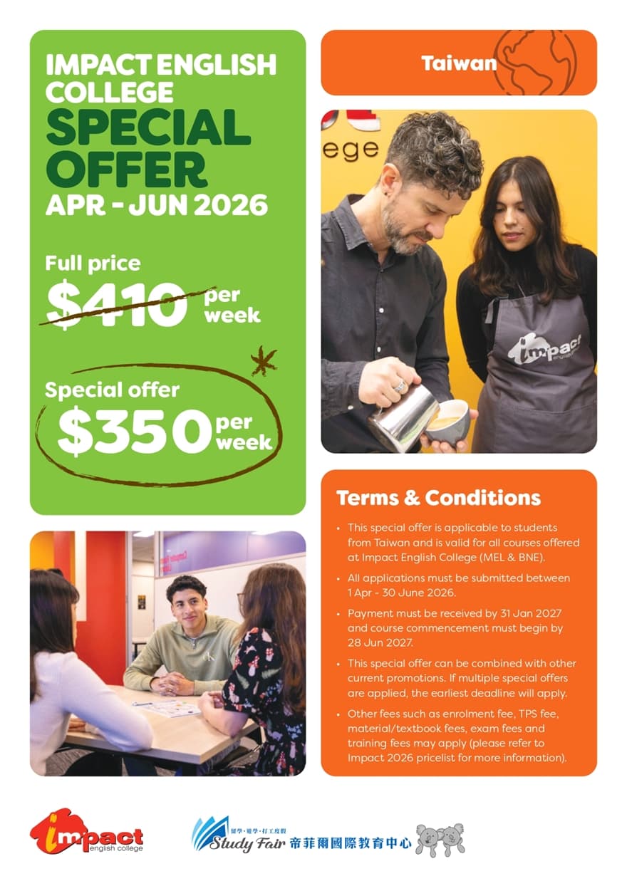 無論您目標是考取高分 IELTS、提升職場競爭力,還是希望更自信地融入澳洲生活,Impact 英語學院都能為您量身打造最佳學習方案,協助您實現目標、開啟新人生。