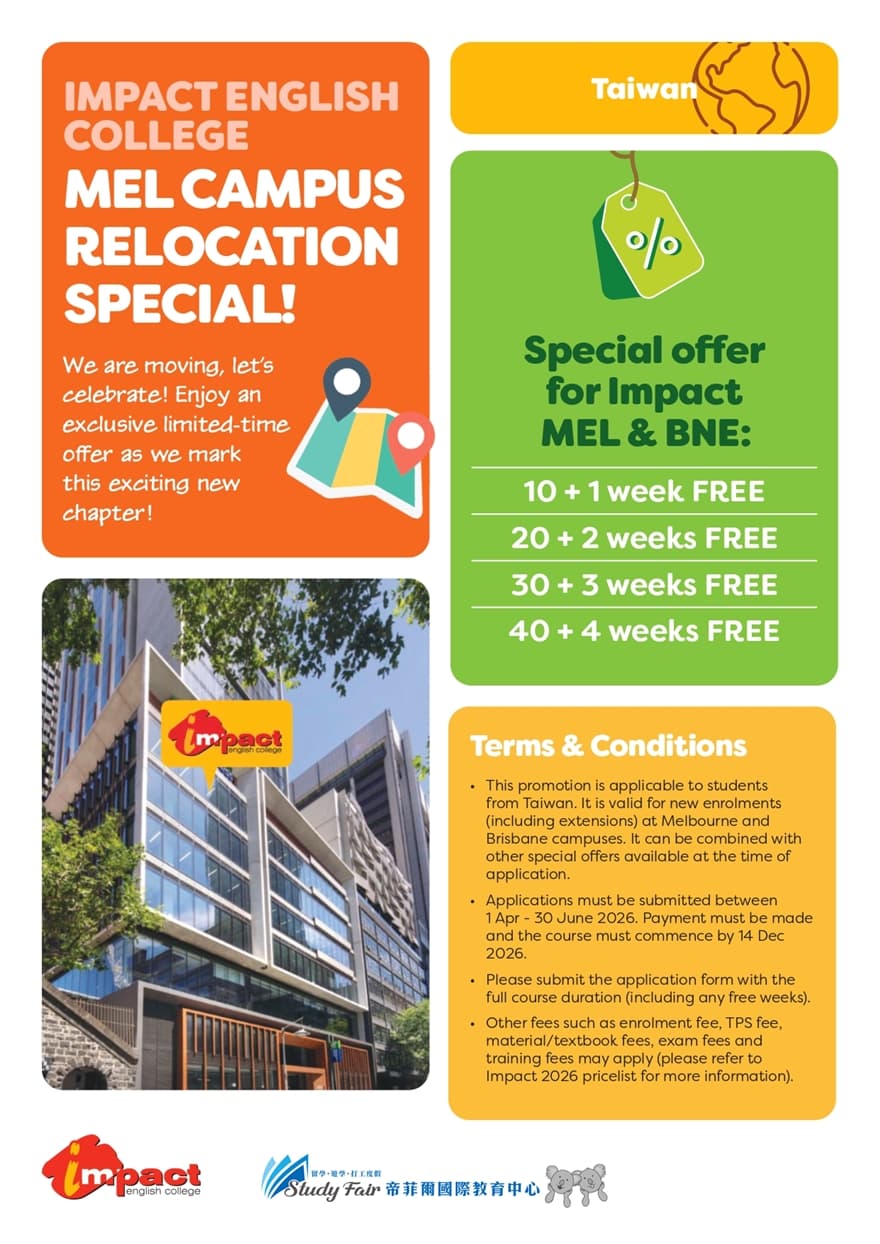 Impact(墨爾本&布里斯本)特別優惠: