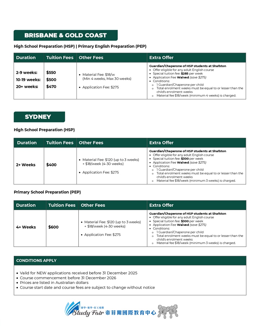 雪梨校區獨家優惠:報名 12 週以上課程,免註冊費 (省 $275)