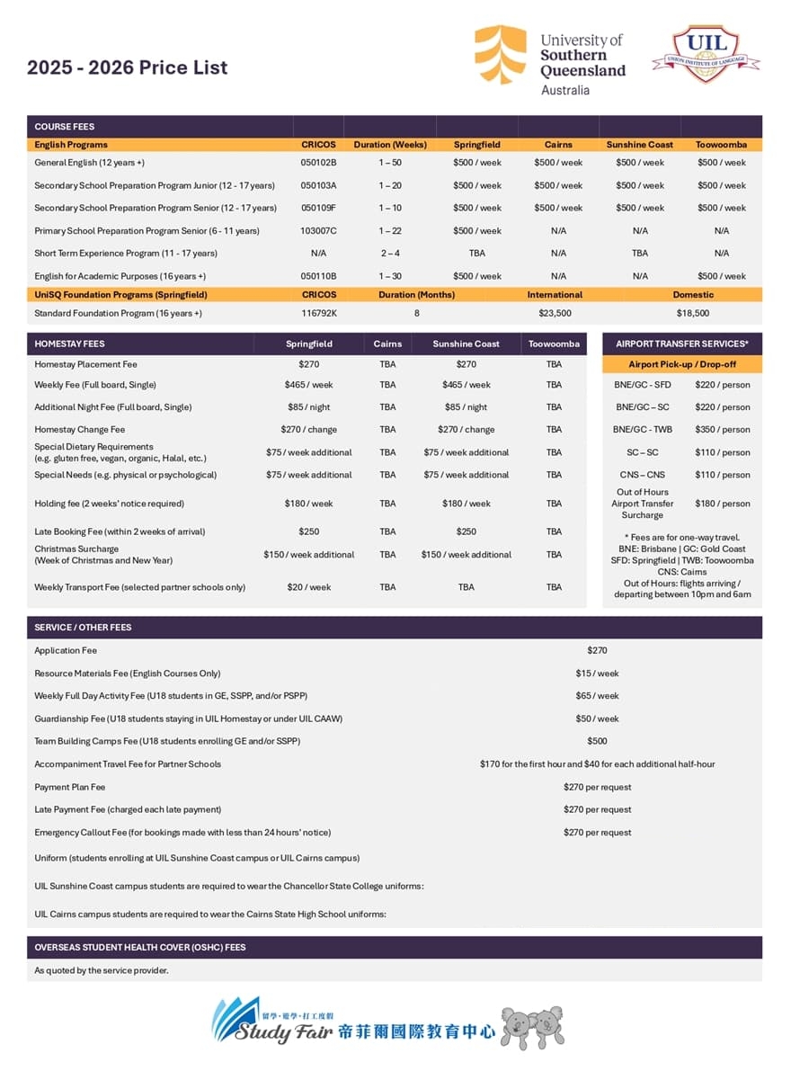 - 南昆士蘭大學(University of Southern Queensland, USQ)附設語言中心。