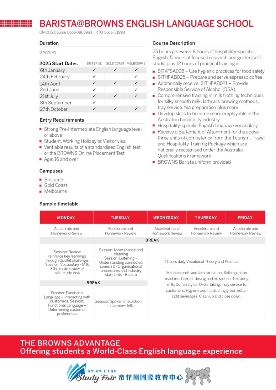 參加 Barista@BROWNS 計畫,為職場成功做好準備!