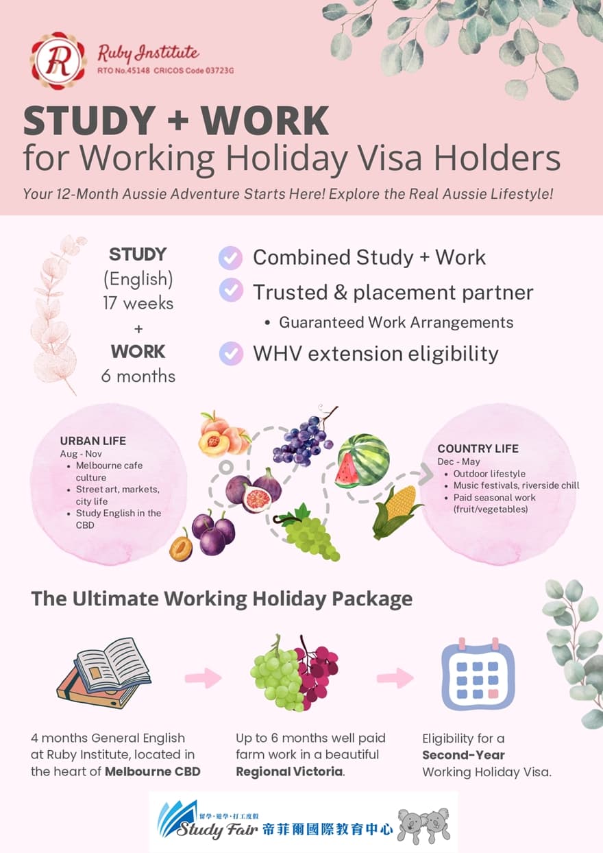 ・學費:AUD $280/週(2025 年台灣學生優惠價)